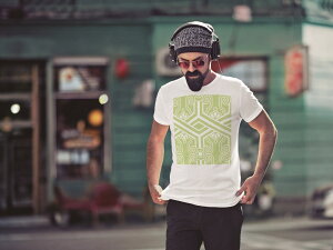 tシャツ メンズ 半袖 ホワイト グレー デザイン XS S M L XL 2XL Tシャツ ティーシャツ T shirt 003920 模様 黄色 黄緑